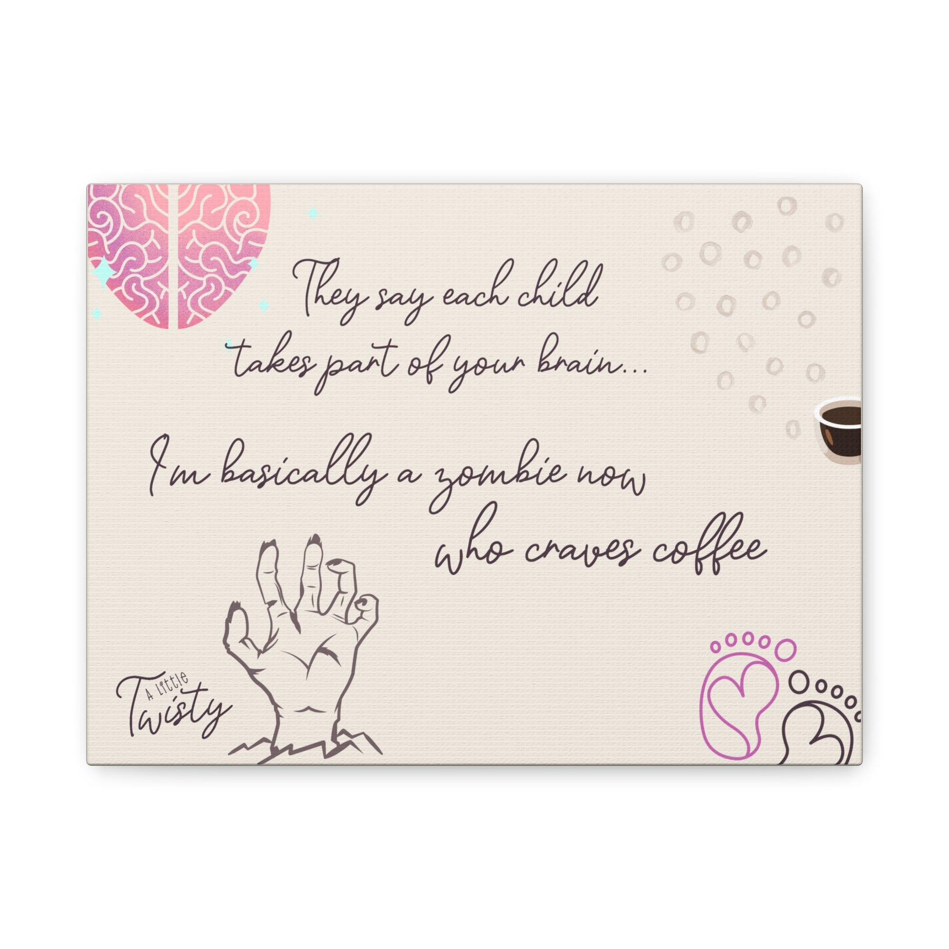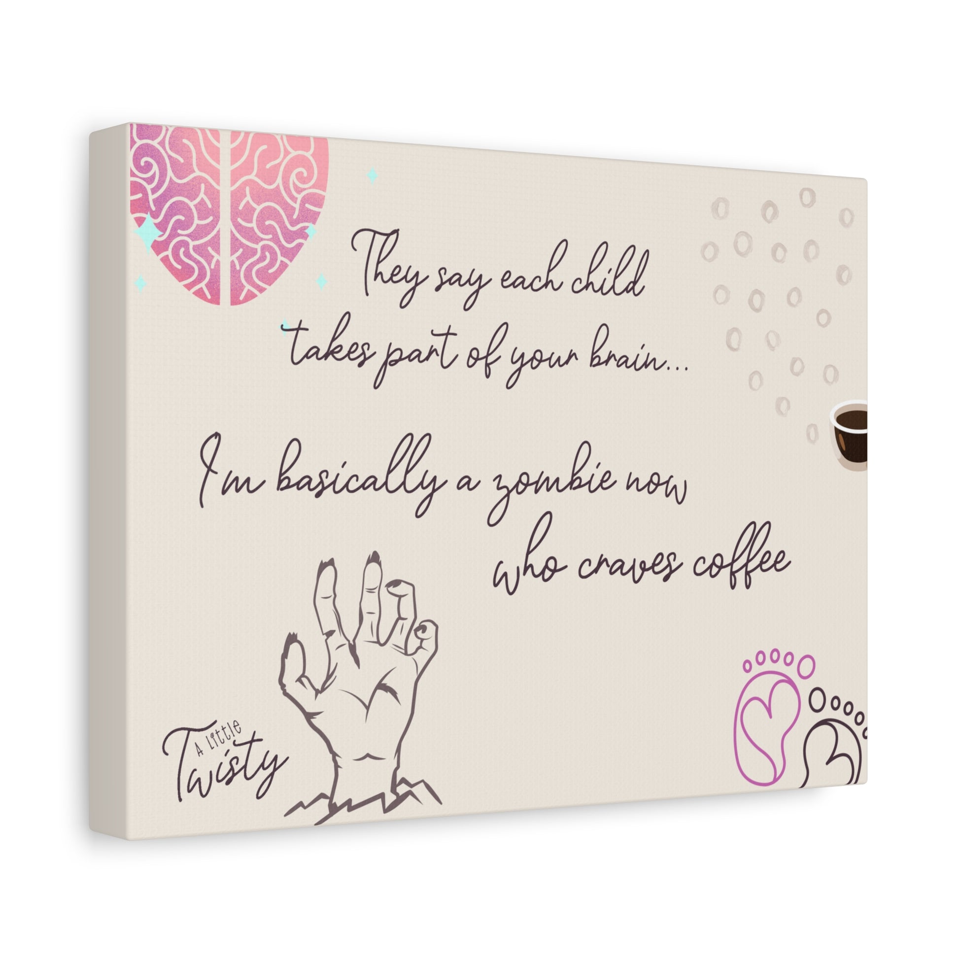 Matte Canvas Coffee Lover Decor | "They say each child takes a part of your brain... I'm basically a zombie who craves coffee"